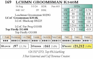 LCHMN Groomsman K340M Non Registered 10.4.2025 Leachman Topline Bull Sale 1pm PT | 169 | $ 4,500.00 |