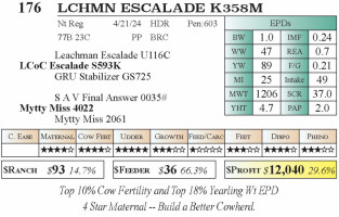 LCHMN Escalade K358M Non Registered 10.4.2025 Leachman Topline Bull Sale 1pm PT | 176 | $ 4,100.00 |