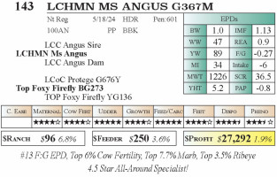 LCHMN Ms Angus G367M Non Registered 10.4.2025 Leachman Topline Bull Sale 1pm PT | 143 | $ 6,000.00 |