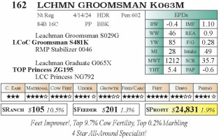 LCHMN Groomsman K063M Non Registered 10.4.2025 Leachman Topline Bull Sale 1pm PT | 162 | $ 4,500.00 |