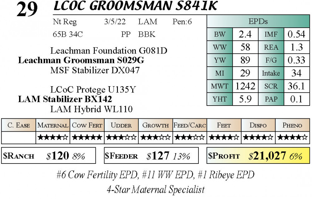 LCoC Groomsman S841K (#29) December 9, 2023 Nebraska Central Plains Sale