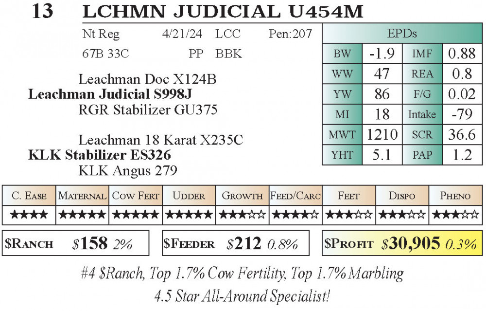 LCHMN JUDICIAL U454M (#13) 11.6.25 Gateway I-70 Bull Sale 5:00pm CT
