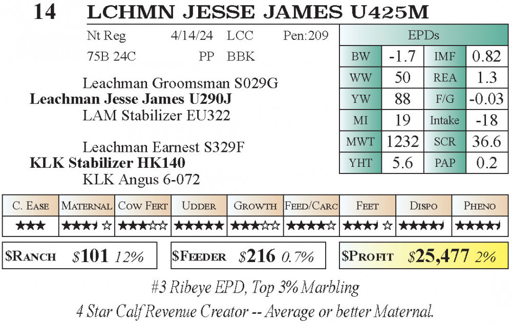 LCHMN JESSE JAMES U425M (#14) 11.6.25 Gateway I-70 Bull Sale 5:00pm CT
