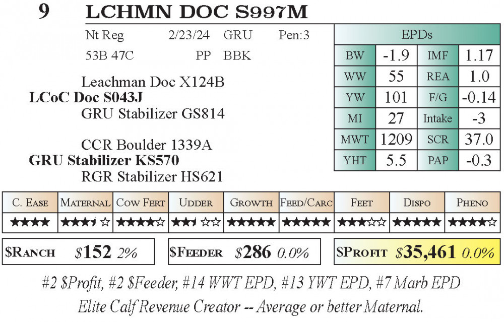 #2 $Profit, #2 $Feeder, #14 WWT EPD, #13 YWT EPD, #7 Marb EPD