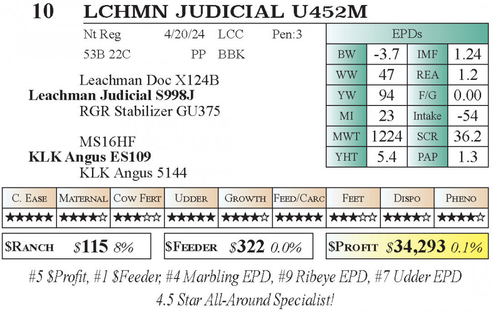 #5 $Profit, #1 $Feeder, #4 Marbling EPD, #9 Ribeye EPD, #7 Udder EPD