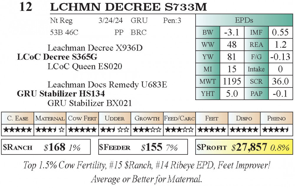 LCHMN DECREE S733M (#12) 11.15.2025 Leachman Central Plains Stabilizer Bull Sale 1:00 PM CT