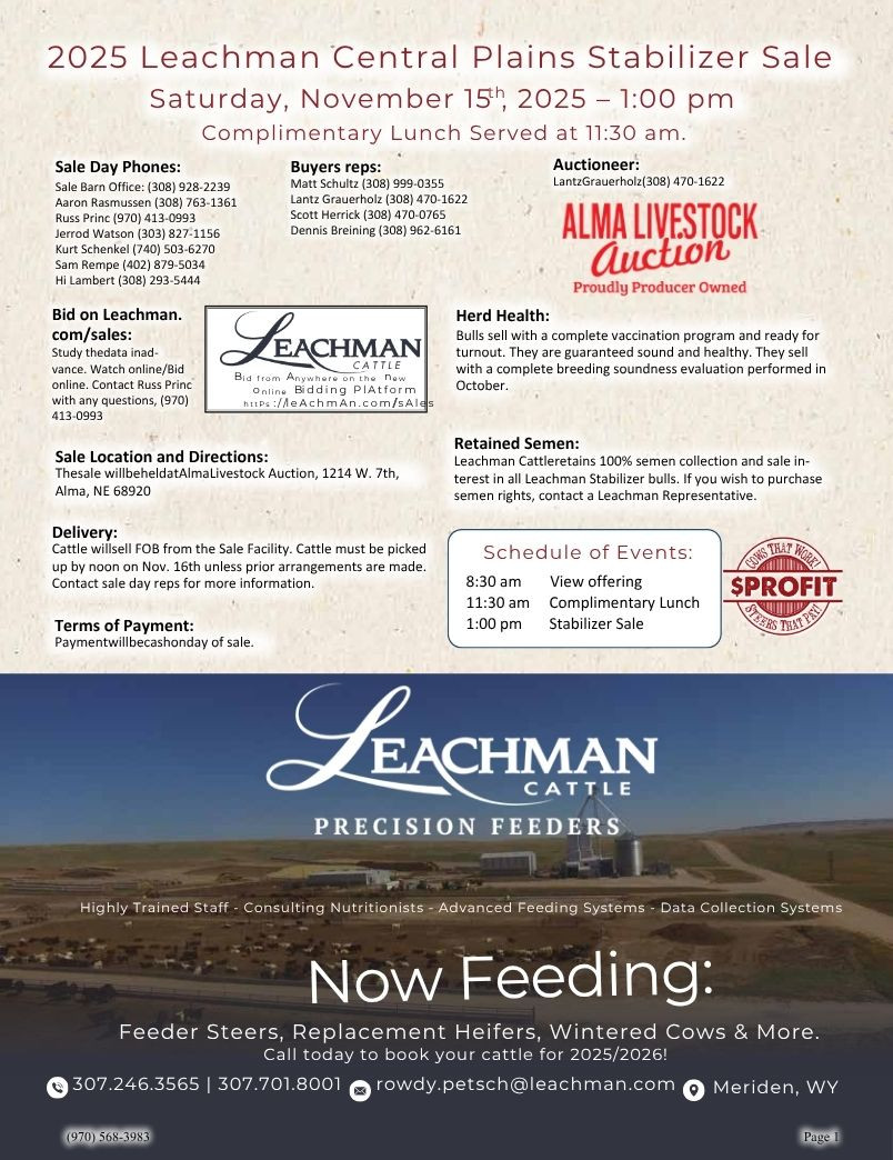 Central Plains Catalog link 11.15.2025 Leachman Central Plains Stabilizer Bull Sale 1:00 PM CT