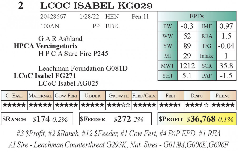 #3 $Profit, #2 $Ranch, #12 $Feeder, #1 Cow Fert, #4 PAP EPD, #1 REA