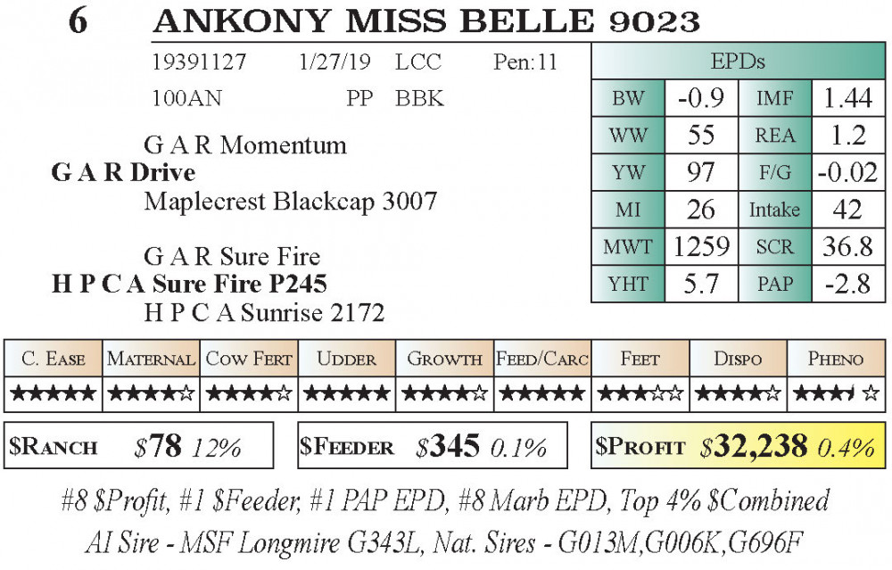 #8 $Profit, #1 $Feeder, #1 PAP EPD, #8 Marb EPD, Top 4% $Combined