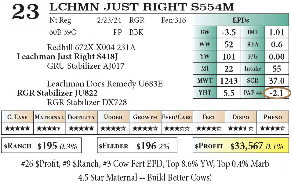 #26 $Profit, #9 $Ranch, #3 Cow Fert EPD, Top 8.6% YW, Top 0.4% Marb