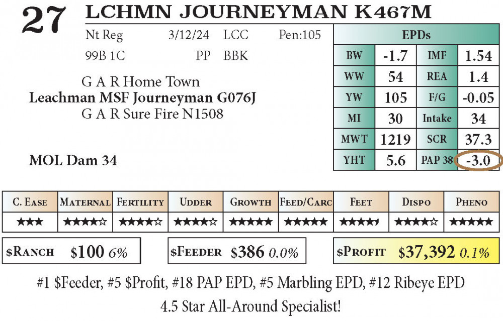 #1 $Feeder, #5 $Profit, #18 PAP EPD, #5 Marbling EPD, #12 Ribeye EPD