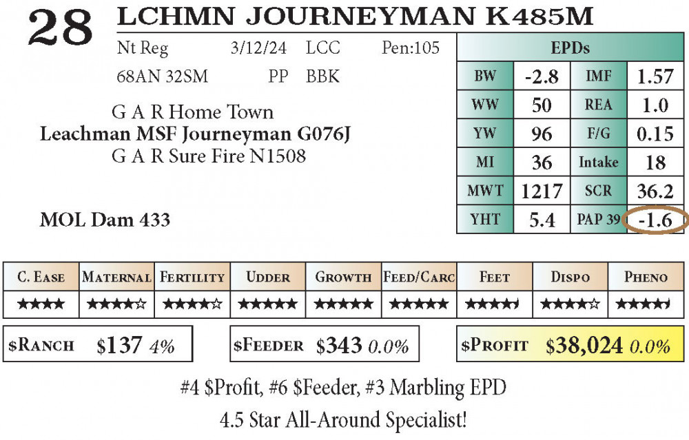 #4 $Profit, #6 $Feeder, #3 Marbling EPD