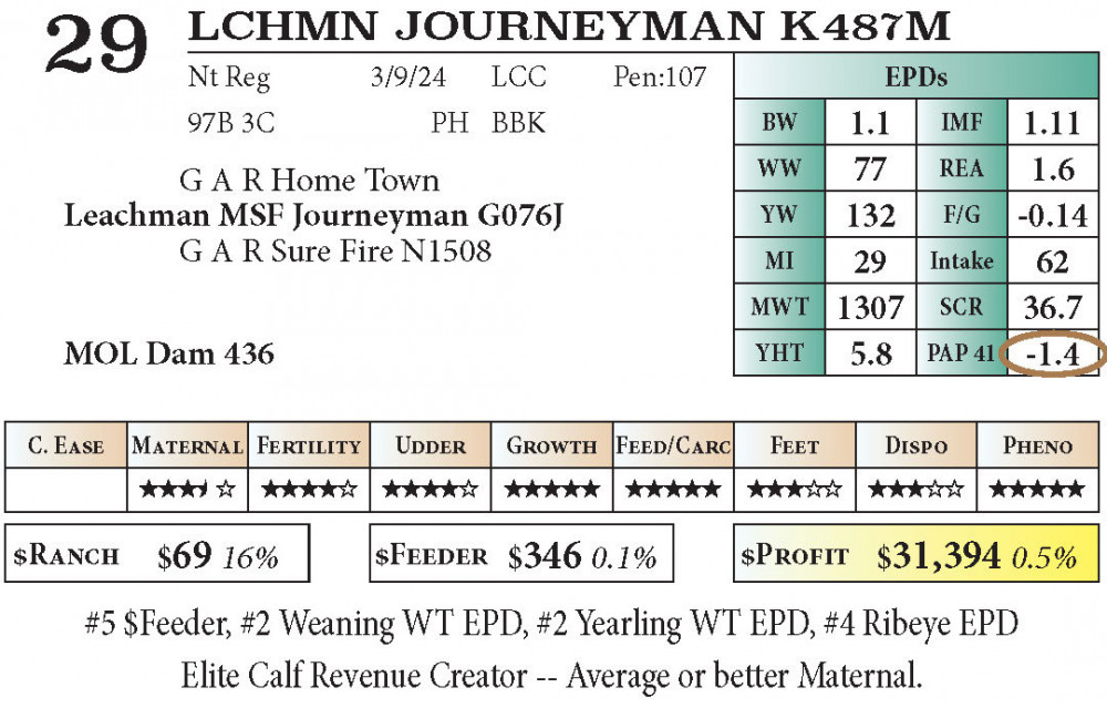 LCHMN JOURNEYMAN K487M (#29) 12.06.25 Leachman High Altitude Sale 11:00 AM MTN