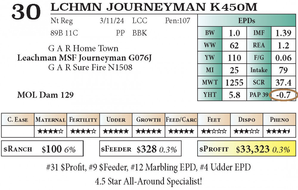 #31 $Profit, #9 $Feeder, #12 Marbling EPD, #4 Udder EPD