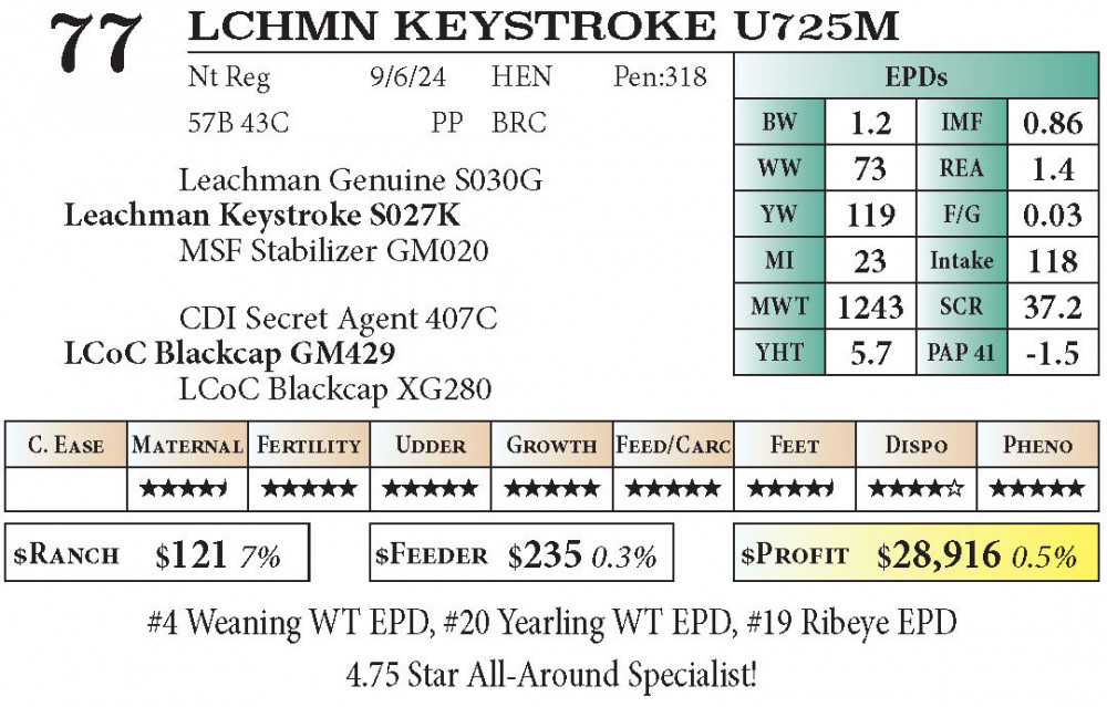 LCHMN KEYSTROKE U725M (#77) 12.06.25 Leachman High Altitude Sale 11:00 AM MTN