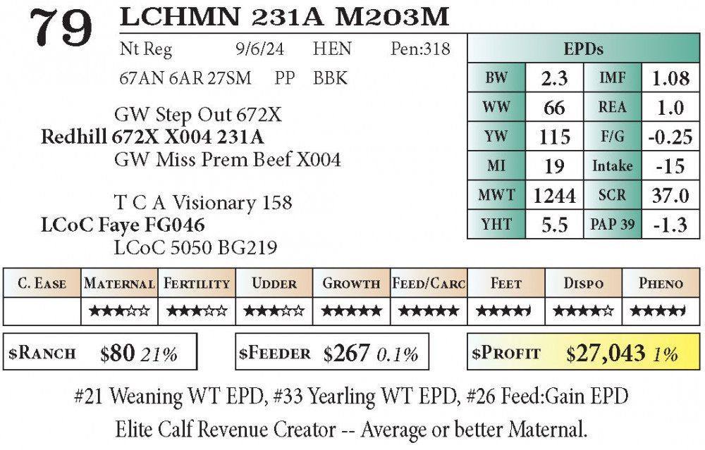 #21 Weaning WT EPD, #33 Yearling WT EPD, #26 Feed:Gain EPD