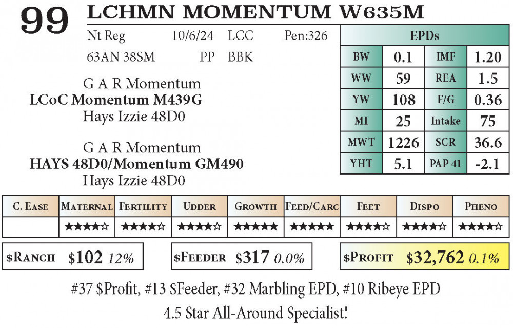 #37 $Profit, #13 $Feeder, #32 Marbling EPD, #10 Ribeye EPD