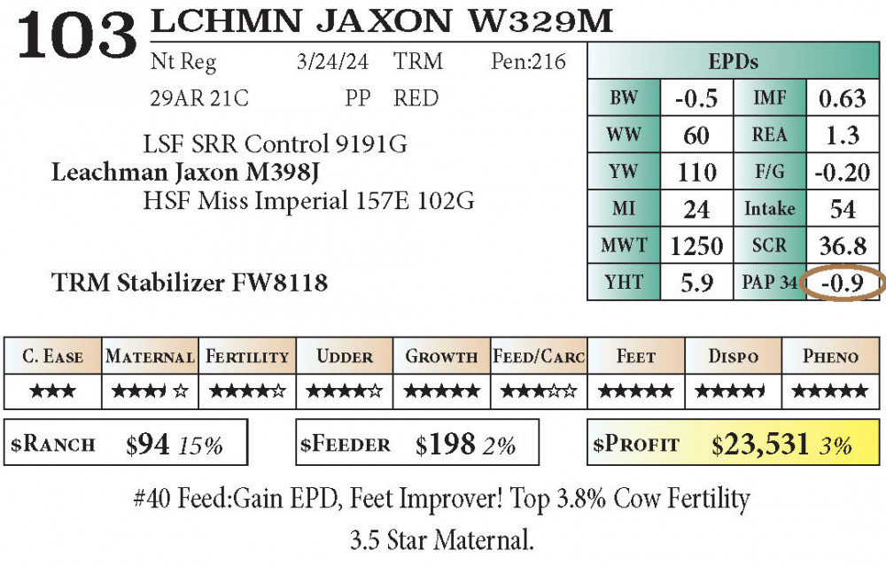 #40 Feed:Gain EPD, Feet Improver! Top 3.8% Cow Fertility