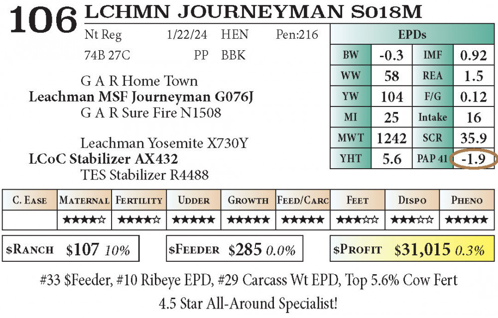 #33 $Feeder, #10 Ribeye EPD, #29 Carcass Wt EPD, Top 5.6% Cow Fert