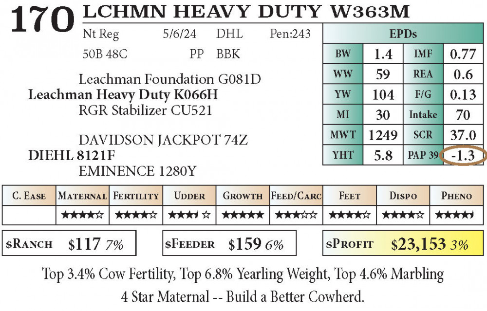 Top 3.4% Cow Fertility, Top 6.8% Yearling Weight, Top 4.6% Marbling