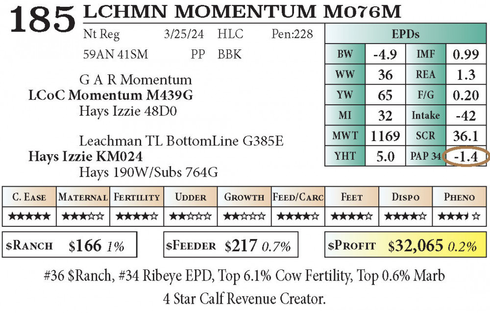 #36 $Ranch, #34 Ribeye EPD, Top 6.1% Cow Fertility, Top 0.6% Marb