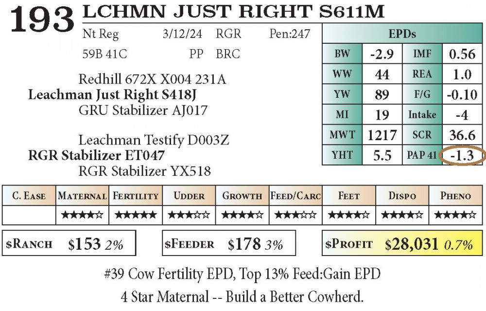 LCHMN JUST RIGHT S611M (#193) 12.06.25 Leachman High Altitude Sale 11:00 AM MTN
