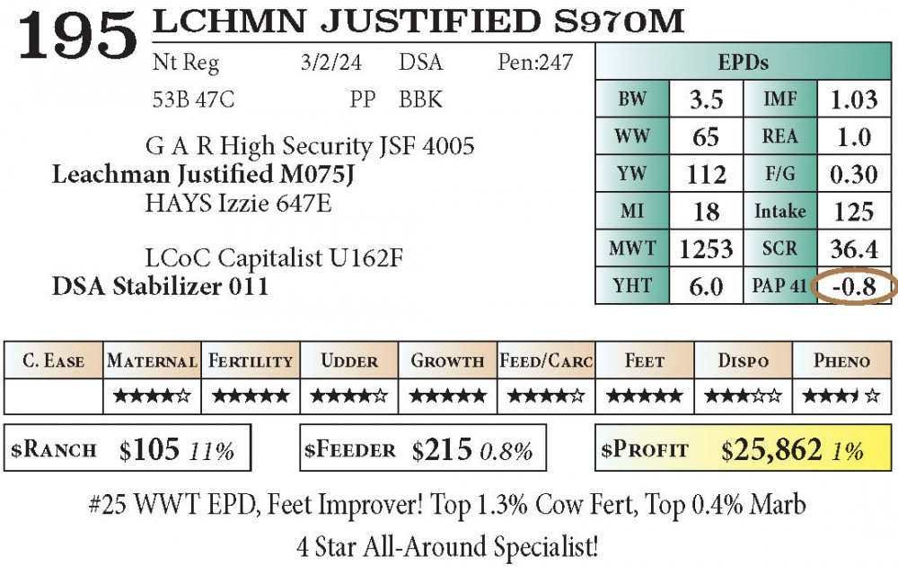 #25 WWT EPD, Feet Improver! Top 1.3% Cow Fert, Top 0.4% Marb