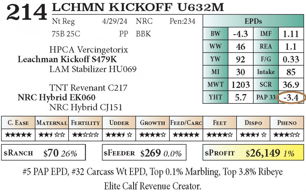 #5 PAP EPD, #32 Carcass Wt EPD, Top 0.1% Marbling, Top 3.8% Ribeye