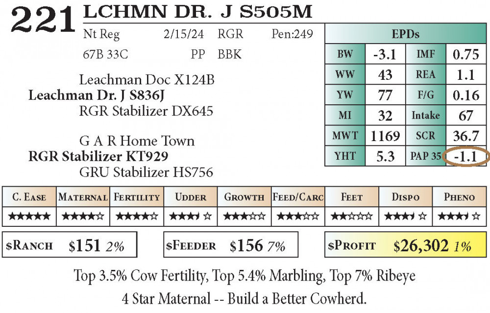 Top 3.5% Cow Fertility, Top 5.4% Marbling, Top 7% Ribeye