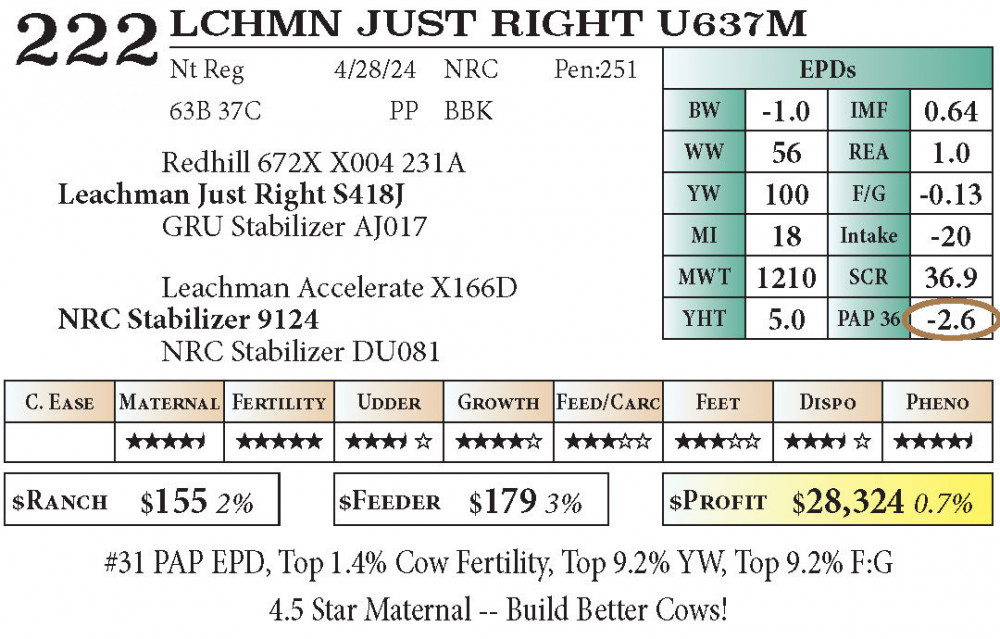 #31 PAP EPD, Top 1.4% Cow Fertility, Top 9.2% YW, Top 9.2% F:G