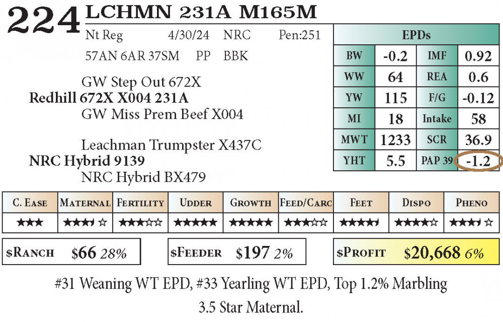 #31 Weaning WT EPD, #33 Yearling WT EPD, Top 1.2% Marbling