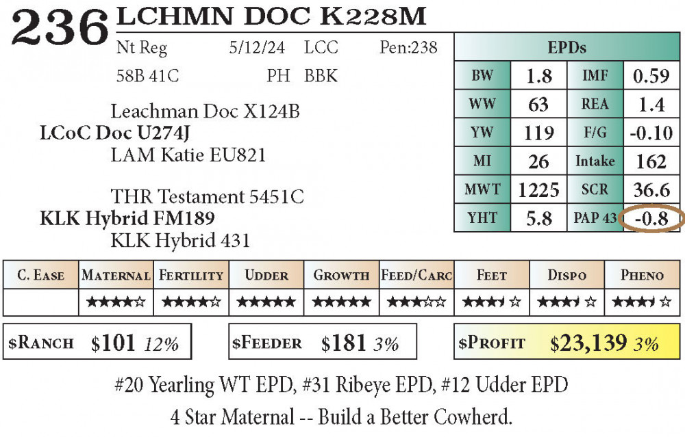 #20 Yearling WT EPD, #31 Ribeye EPD, #12 Udder EPD