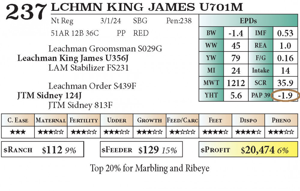 LCHMN KING JAMES U701M (#237) 12.06.25 Leachman High Altitude Sale 11:00 AM MTN