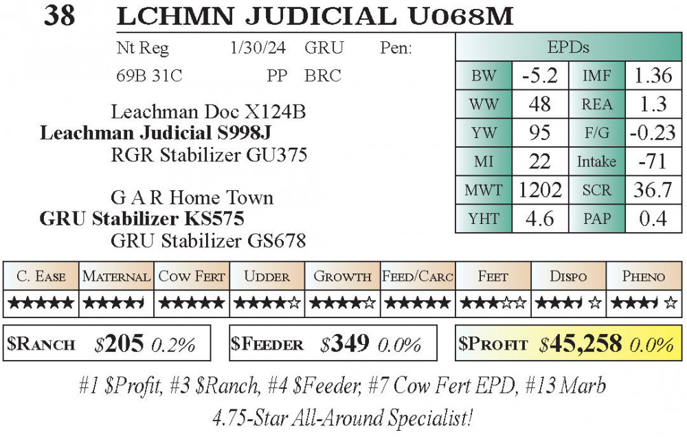 LCHMN Judicial U068M (#38) 1.9.2026 Leachman Early Bird PRIVATE TREATY offering (AVAILABLE NOW!!!) PT Bulls - Stabilizer