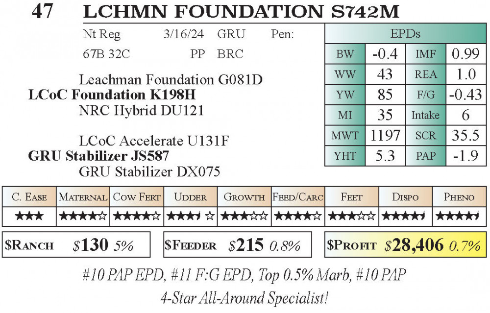 LCHMN Foundation S742M (#47) 1.9.2026 Leachman Early Bird PRIVATE TREATY offering (AVAILABLE NOW!!!) PT Bulls - Stabilizer
