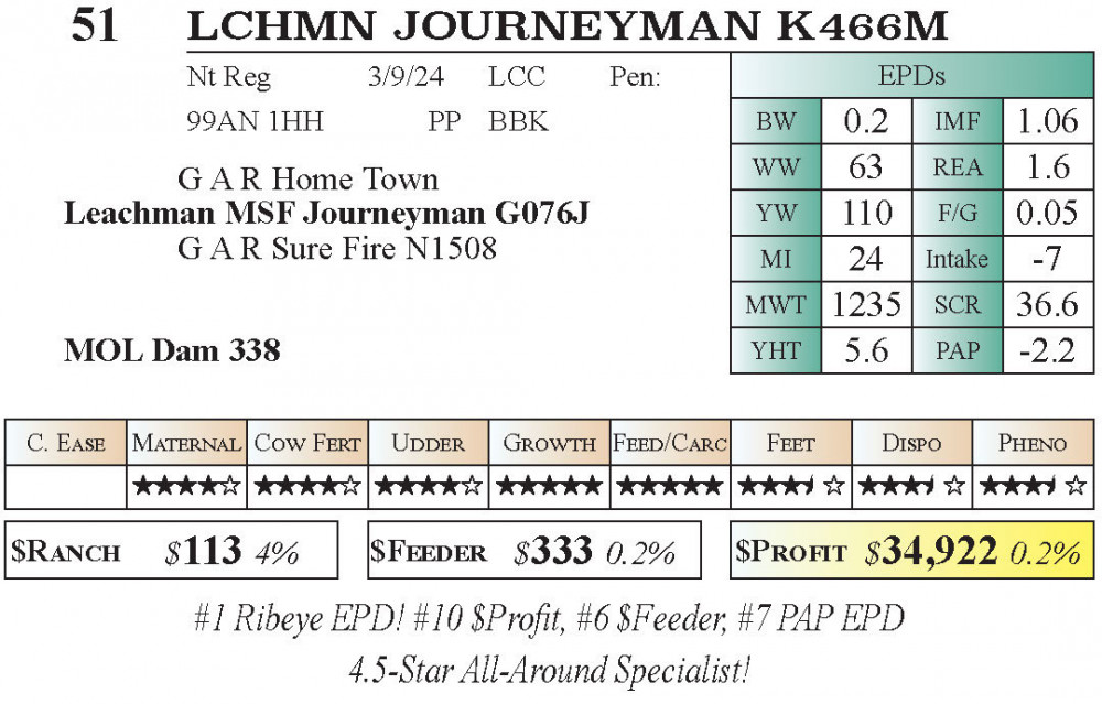 LCHMN Journeyman K466M (#51) 1.9.2026 Leachman Early Bird PRIVATE TREATY offering (AVAILABLE NOW!!!) PT Bulls - Stabilizer