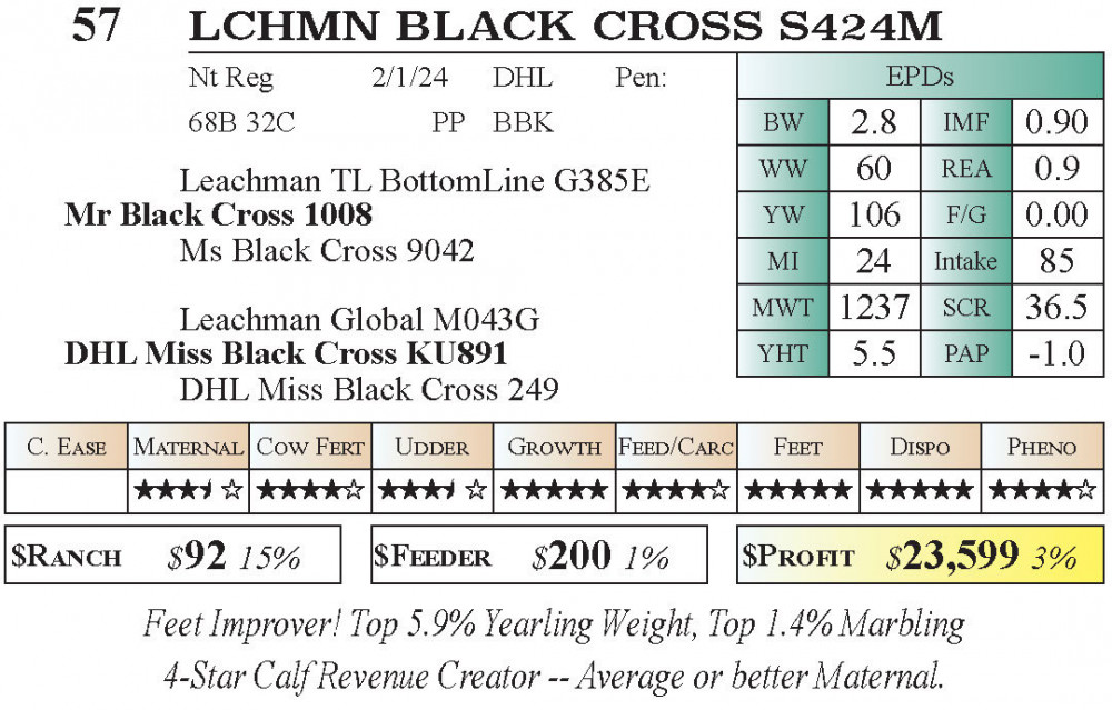 LCHMN Black Cross S424M (#57) 1.9.2026 Leachman Early Bird PRIVATE TREATY offering (AVAILABLE NOW!!!) PT Bulls - Stabilizer