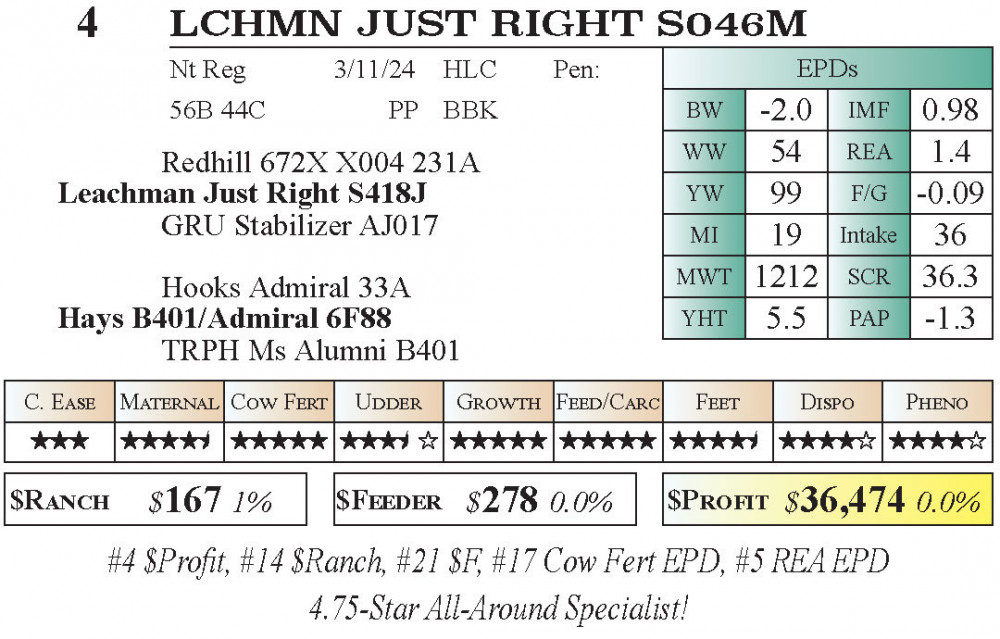 LCHMN Just Right S046M (#4) 1.9.2026 Leachman Early Bird AUCTION 4:00 PM MTN