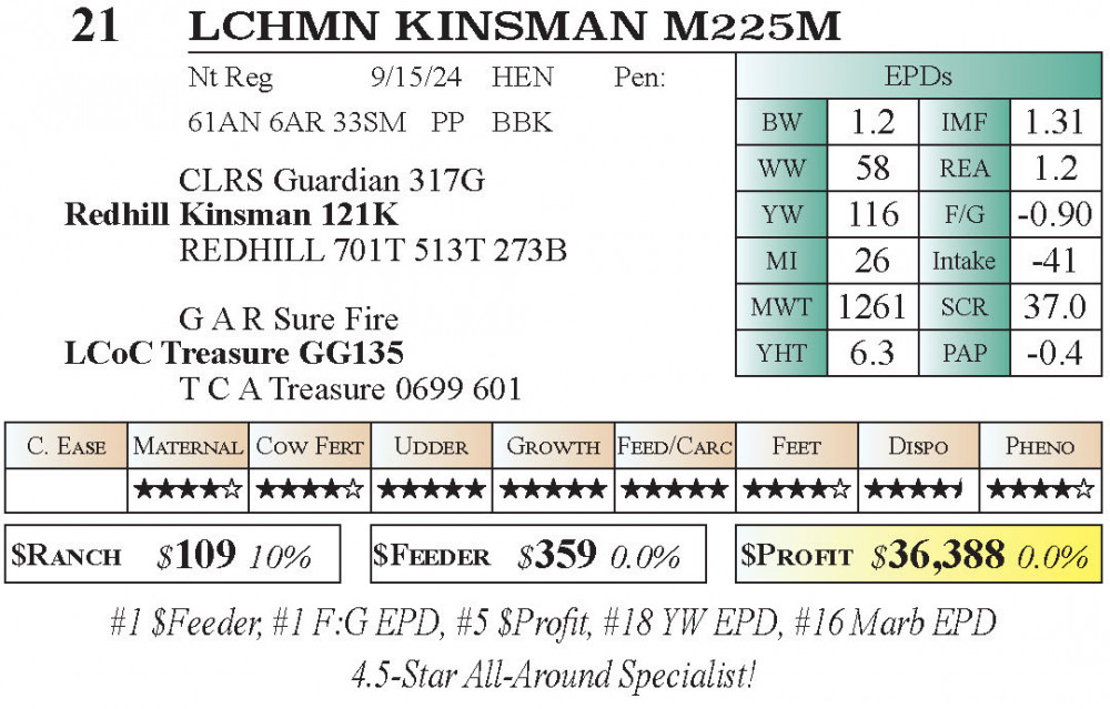 LCHMN Kinsman M225M (#21) 1.9.2026 Leachman Early Bird AUCTION 4:00 PM MTN