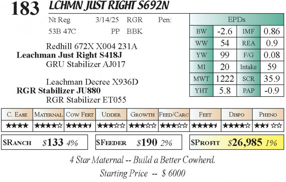 S692N (#183) 4.4.26 Rieger Ranch Racehorse Bull Sale