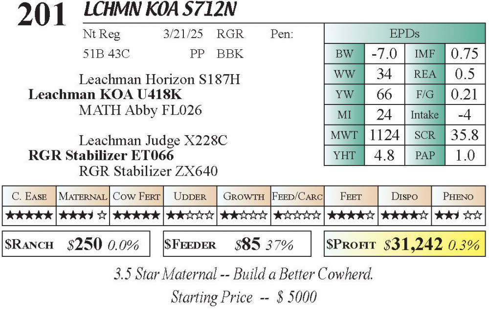 S712N (#201) 4.4.26 Rieger Ranch Racehorse Bull Sale