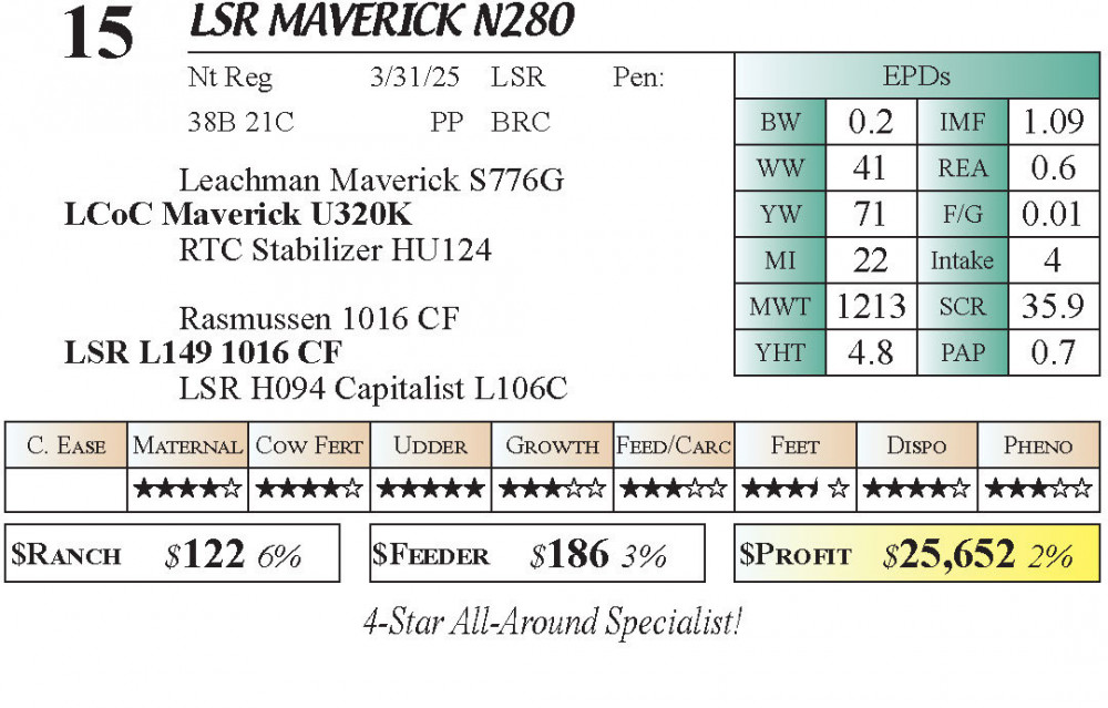 LSR Maverik N280 (#15) 4.20.26 Lazy Swede Ranch Bull Sale 6:00 PM MTN