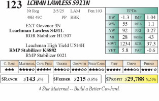 LCHMN Lawless S911N (#123) 5.2.26 Grass Time Bull & Female Sale 10:00 am MTN