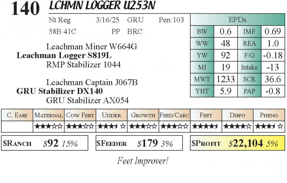 LCHMN Logger U253N (#140) Grass Time Private Treaty Online Bull Sale