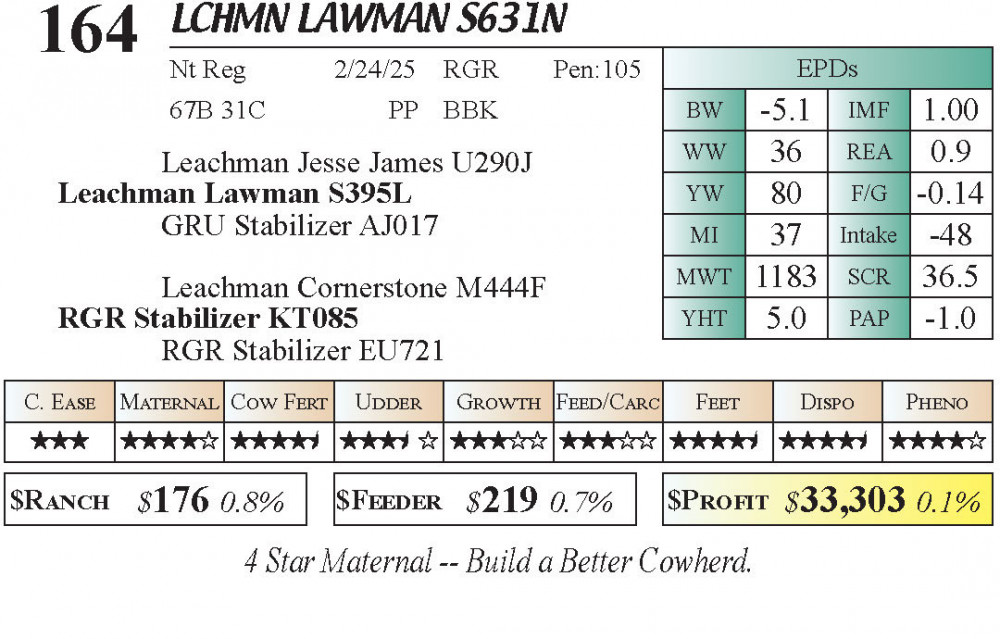 LCHMN Lawman S631N (#164) Grass Time Private Treaty Online Bull Sale