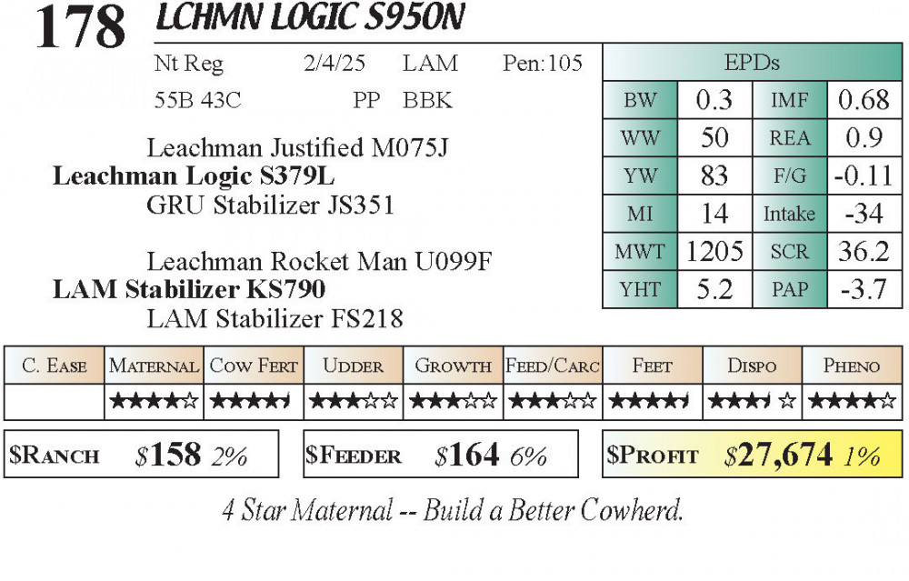 LCHMN Logic S950N (#178) Grass Time Private Treaty Online Bull Sale