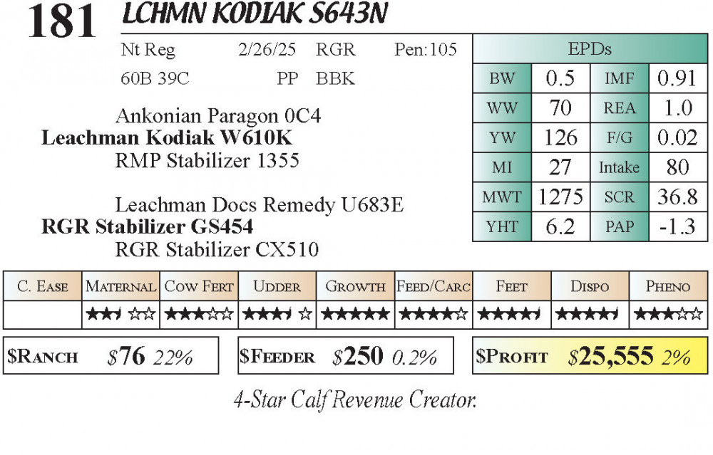 LCHMN Kodiak S643N (#181) Grass Time Private Treaty Online Bull Sale PT Bulls - Stabilizer