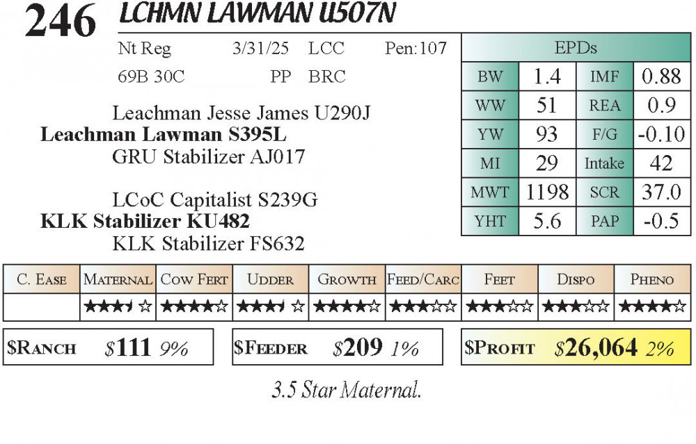 LCHMN Lawman U507N (#246) Grass Time Private Treaty Online Bull Sale