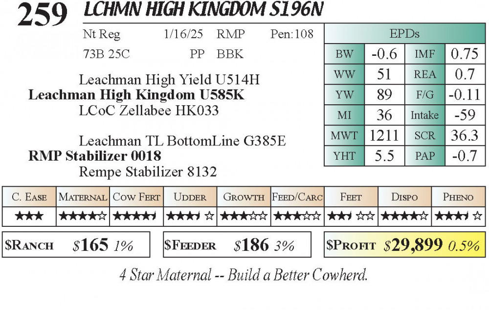 LCHMN High Kingdom S196N (#259) Grass Time Private Treaty Online Bull Sale