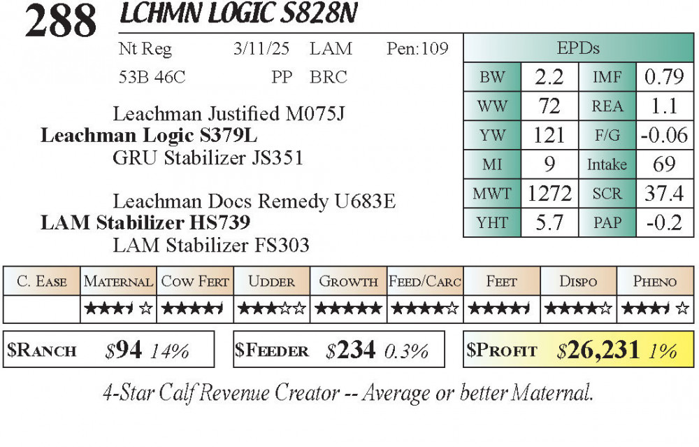 LCHMN Logic S828N (#288) Grass Time Private Treaty Online Bull Sale